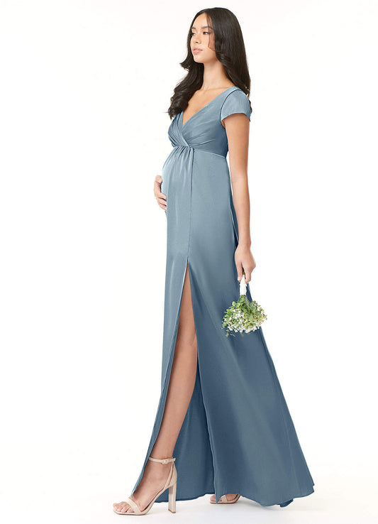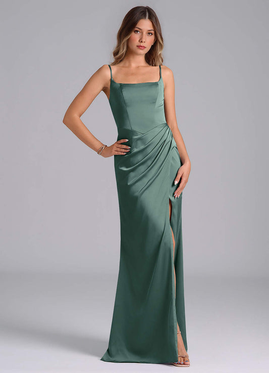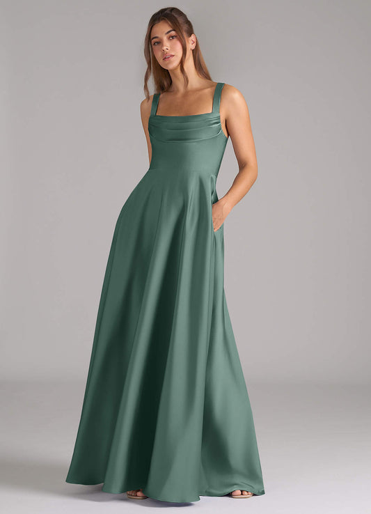 A-Line Metallic Satin Floor-Length Dress Matcha