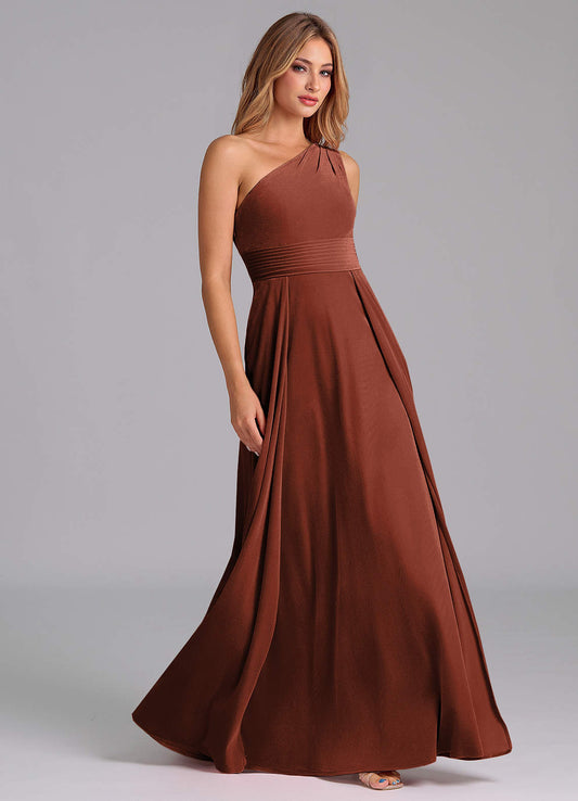 A-Line Pleated Stretch Satin Floor-Length Dress Terracotta
