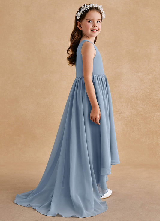 Dusty Blue Ball-Gown Pleated Matte Satin Dress