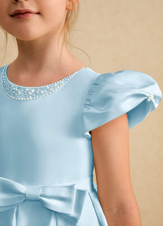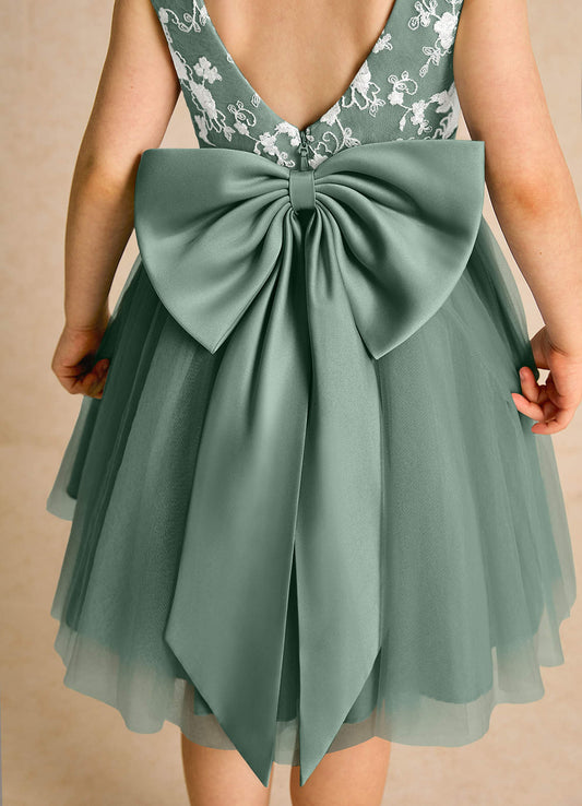 Steel Blue Ball-Gown Bow Tulle Dress