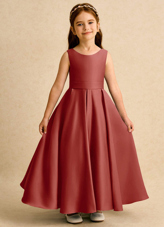 Burgundy Ball-Gown Bow Matte Satin Dress