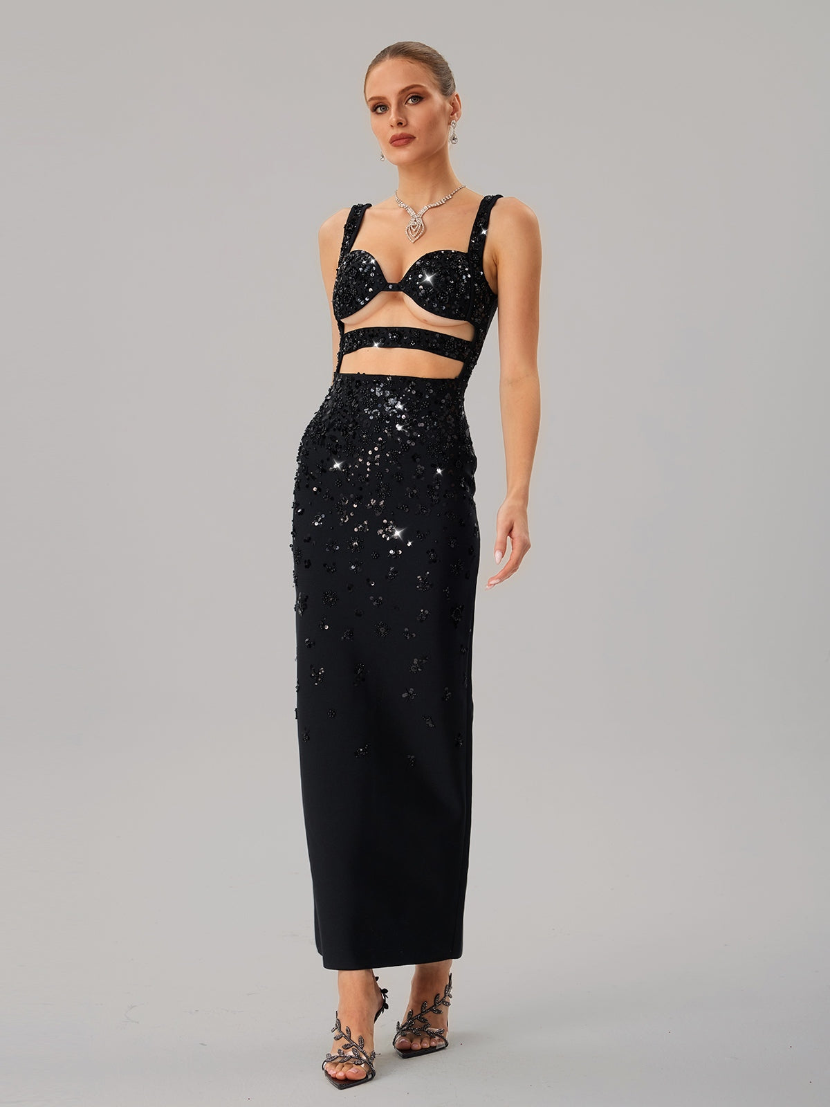 Jetmixor Cutout Sequin Bandage Maxi Dress