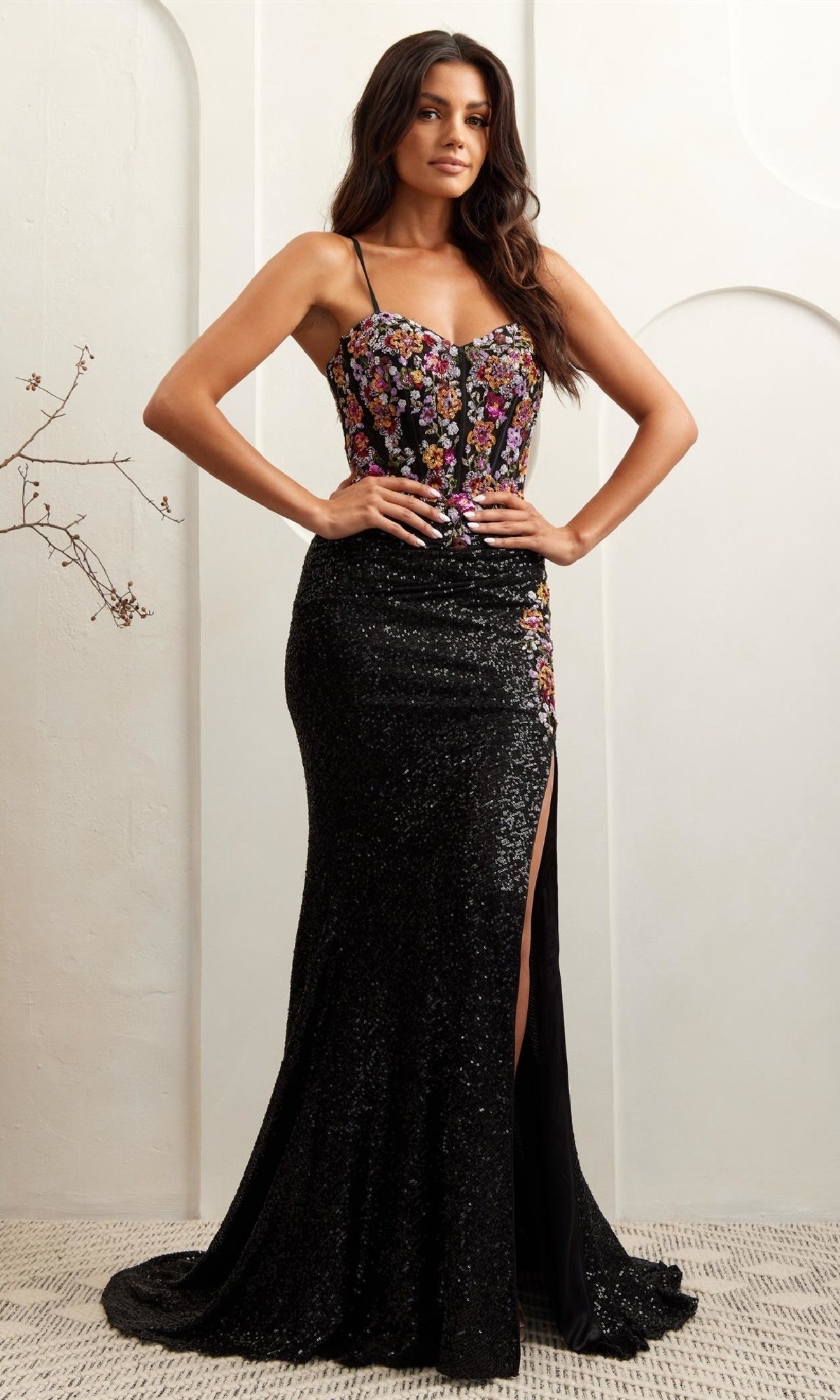Here's a beautiful long sequin prom dress that you'll want to pull from your closet again and again. Simply gorgeous for prom, galas, and other formal events, this corset-back long formal dress features lovely.