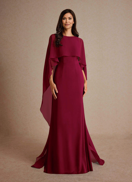 Burgundy A-Line Scoop Lace Chiffon Dress