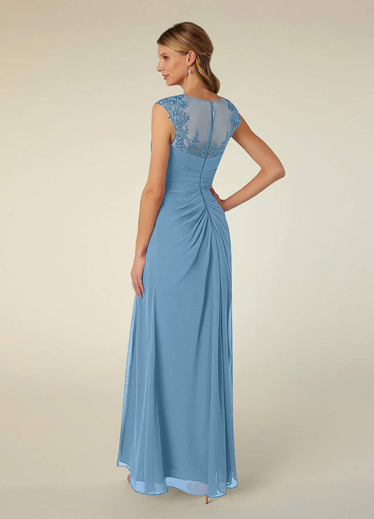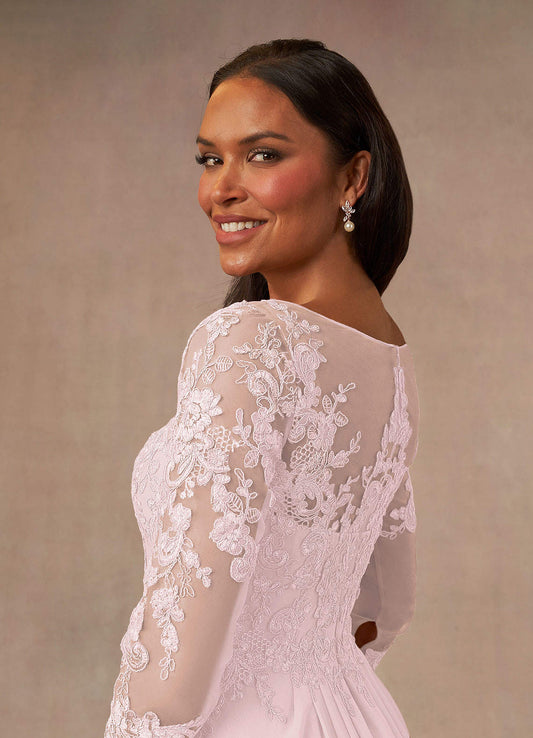 Dusty Rose A-Line Square Neckline Lace Chiffon Dress