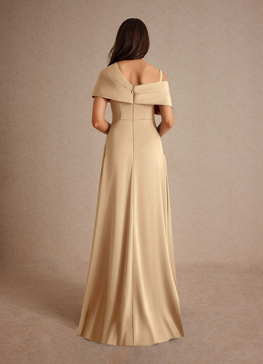 Dusty Blue A-Line Pleated Stretch Satin Dress