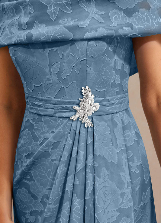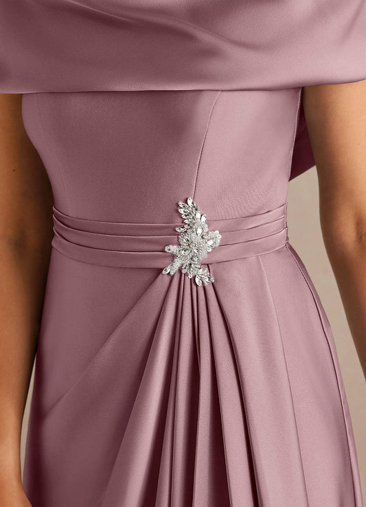 Dusty Blue Sheath Pleated Stretch Satin Dress